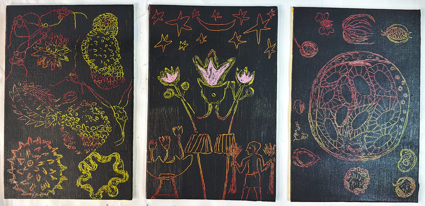 This series of paintings seeks to raise awareness about the profound connection between the microcosm and the macrocosm, highlighting our ecological responsibility and the urgent need to protect our environment.